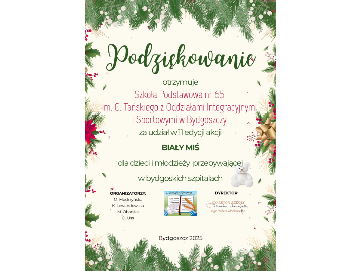 Z ogromną radością informujemy, że szkolna akcja charytatywna „Biały Miś” zakończyła się wielkim sukcesem. Dzięki ogromnemu zaangażowaniu całej społeczności szkolnej po raz kolejny pokazaliśmy, jak wiele dobra potrafimy wspólnie uczynić.