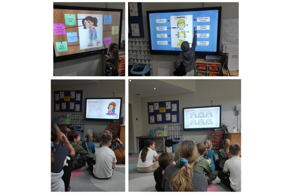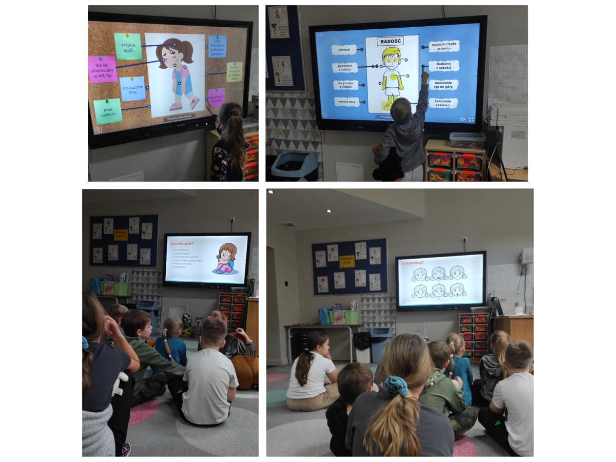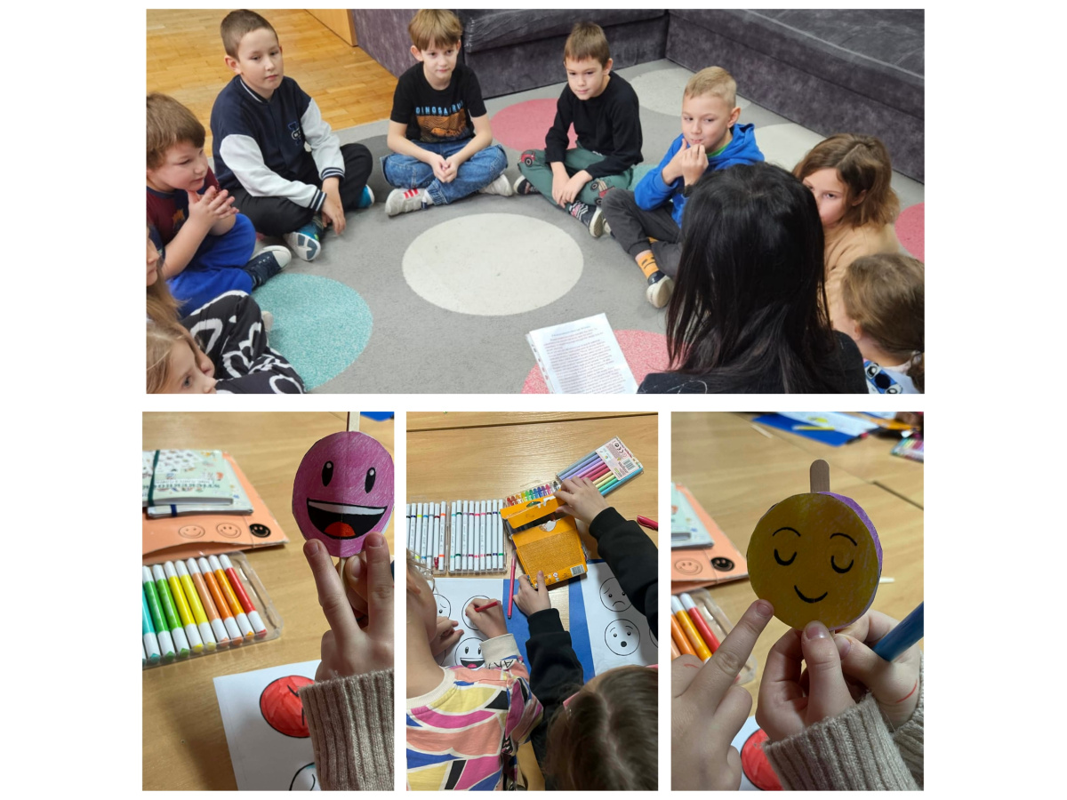 W ubiegłym tygodniu dzieci ze świetlicy w budynku filii, uczestniczyły w zajęciach o emocjach, w ramach innowacji pedagogicznej. Nasze zajęcia rozpoczęliśmy od krótkiej pogadanki na temat tego czym są emocje. Wysłuchaliśmy opowiadania " O wesołym i smutnym żółwiu" M. Leśnego. Uczniowie otrzymali zadanie polegające na przyporządkowaniu, w których częściach ciała odczuwają różne emocje. Ich celem było zauważenie, że emocje nie istnieją jedynie w myślach, lecz często manifestują się fizycznie. Na koniec zajęć dzieci wykonały prace plastyczne.