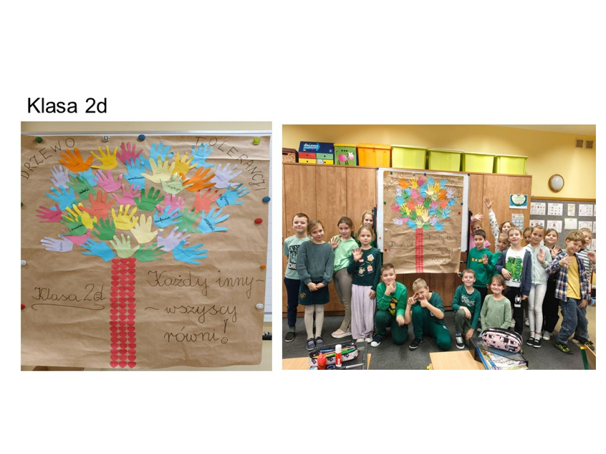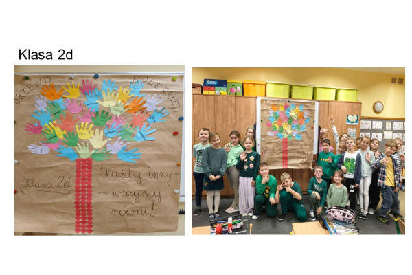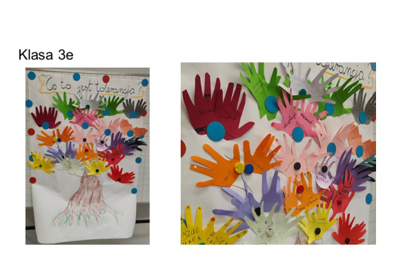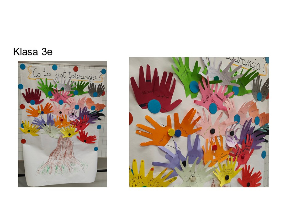 Poprosiliśmy wszystkich o aktywność i wykonanie następujących zadań: klasy 0-I przygotowały łańcuch rąk, klasy II tworzyły drzewo tolerancji, natomiast klasy III- plakaty.