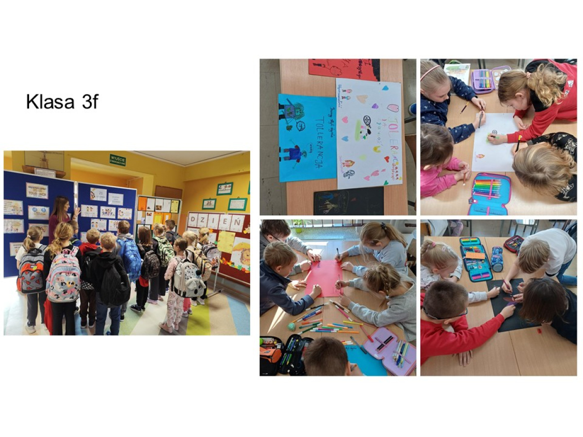 Zachęciliśmy wszystkich uczniów do obejrzenia gazetki na holu szkoły, która wyjaśniała czym jest tolerancja. Zaproponowaliśmy także obejrzenie prezentacji, w której znalazły się między innymi informacje o tym święcie, piosenka o tolerancji, filmik- czym ona jest według dzieci oraz propozycje miłych słów, quiz i mały teleturniej o życzliwości. Uczniowie otrzymali również wklejki do zeszytów.