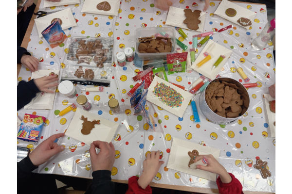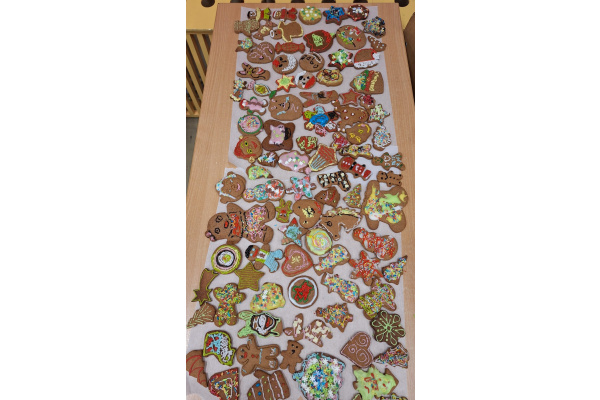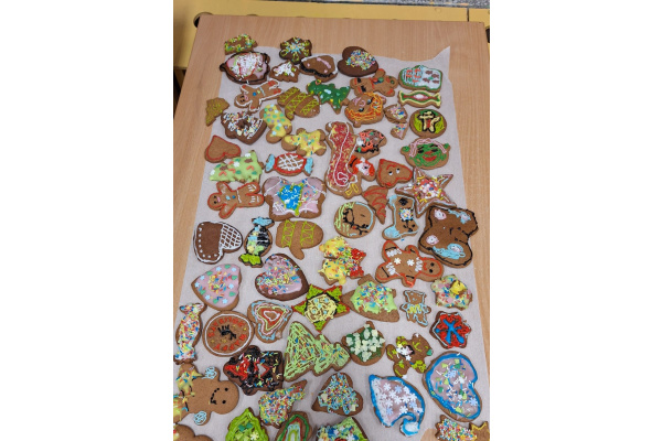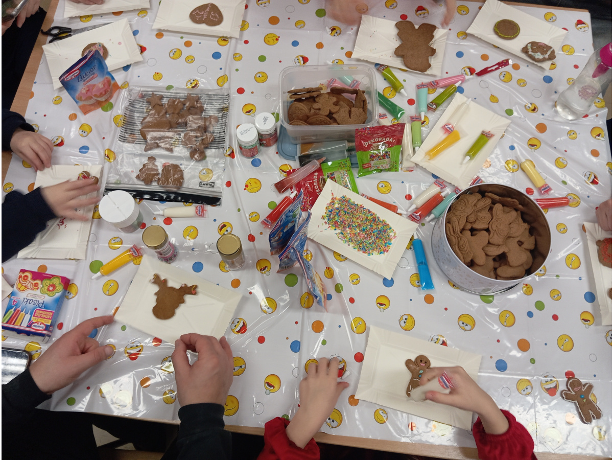 Święta Bożego Narodzenia mają w sobie wyjątkową magię. Magia świąt tkwi przede wszystkim w ludziach – w ich dobrych sercach otwartych na życzliwość oraz pomoc i czynienie dobrych uczynków. 11 grudnia 2025 r. w klasie 1e odbyły się świąteczne i zarazem rodzinne warsztaty. W wydarzeniu uczestniczyły dzieci wraz z rodzicami i rodzeństwem. Podczas warsztatów wszyscy wspólnie ozdabiali pierniki wcześniej upieczone w domach oraz wykonali ozdoby na choinkę. Spotkanie przebiegało w radosnej, świątecznej atmosferze i było także doskonałą okazją do integracji całej społeczności klasowej. Dzięki zaangażowaniu kochanych uczniów oraz ich rodziców powstała ogromna ilość prawdziwie bajkowych pierników, które zachwycają pomysłowością i świątecznym klimatem. Zostaną one przekazane uczestnikom II Festiwalu Piosenki Świątecznej, który odbędzie się w naszej szkole 16 grudnia 2025 r. Zawieszki na choinkę powędrowały z uczestnikami warsztatów do ich domów.