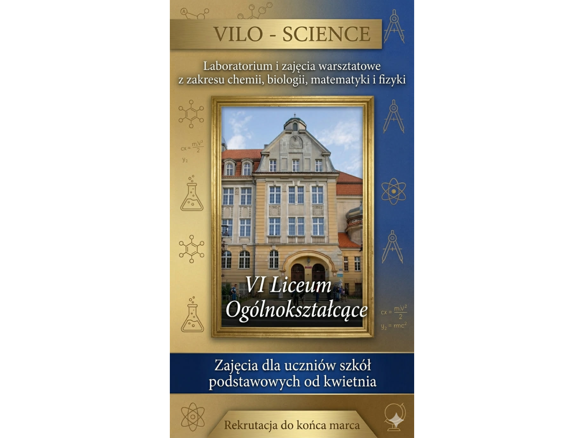 Pałac Młodzieży w Bydgoszczy prowadzi nabór do udziału w bezpłatnych warsztatach laboratoryjnych i zajęciach z zakresu chemii, biologii, matematyki oraz fizyki w ramach projektu „VILO – SCIENCE” realizowanego w ramach Grantu Rozwoju Zdolności w ramach Miejskiego Programu Wspierania Ucznia Zdolnego "Zdolni znad Brdy".