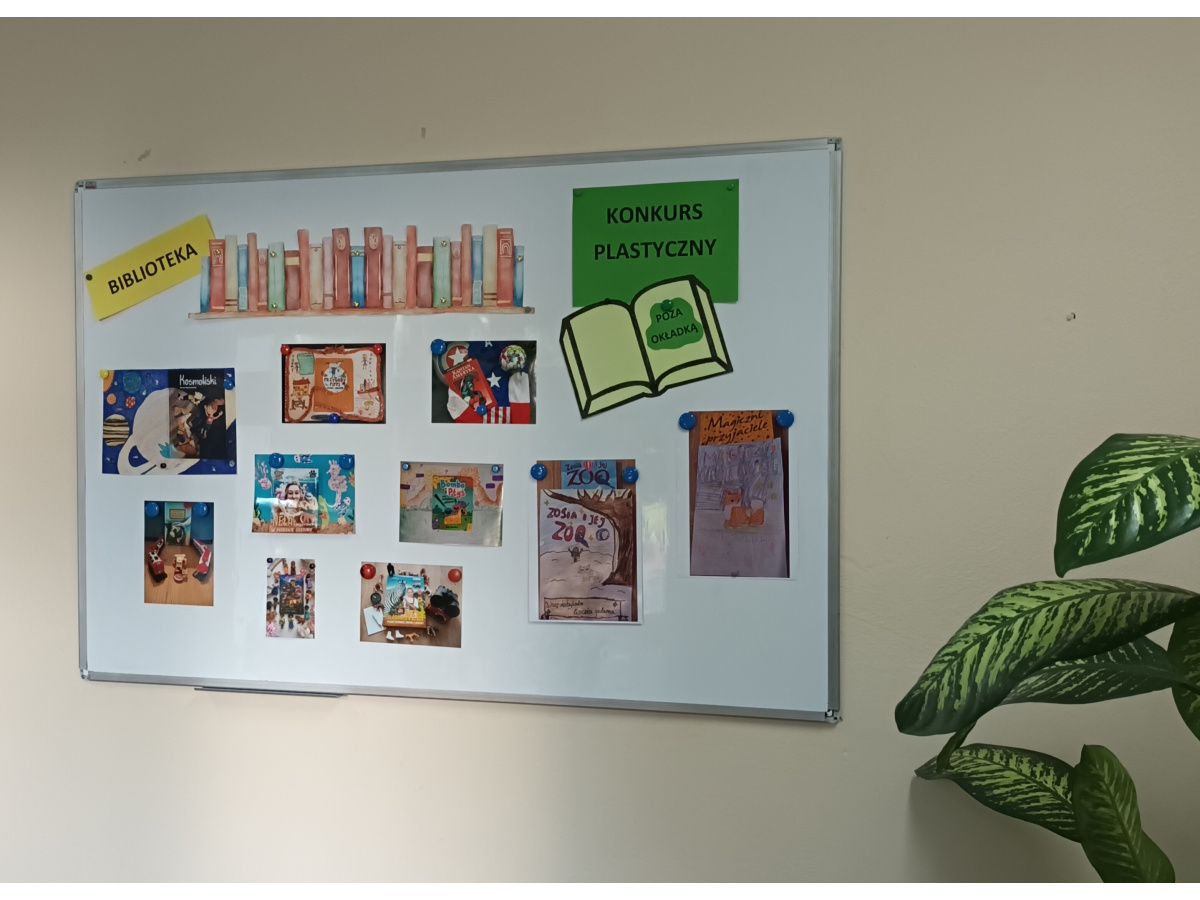 Biblioteka szkolna zorganizowała międzyszkolny konkurs plastyczny „Poza okładką”, którego celem było zachęcenie uczniów do twórczej interpretacji ulubionych książek i pokazania, co kryje się poza ich stronami. Prace uczestników zachwyciły różnorodnością pomysłów, kreatywnością oraz starannością wykonania.
